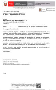 «Como funcionaria pública de carrera, mi compromiso con el país no concluye con este cargo. Seguiré poniendo mis capacidades y experiencia al servicio del Estado desde donde se requiera y sea más útil para el Perú, con la misma dedicación y vocación de servicio que han guiado mi trayectoria profesional», concluye.