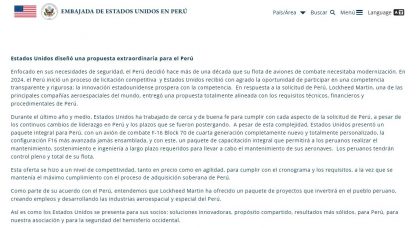 La embajada norteamericana en Lima se refirió también a los argumentos para posponer la decisión de compra de estas naves.