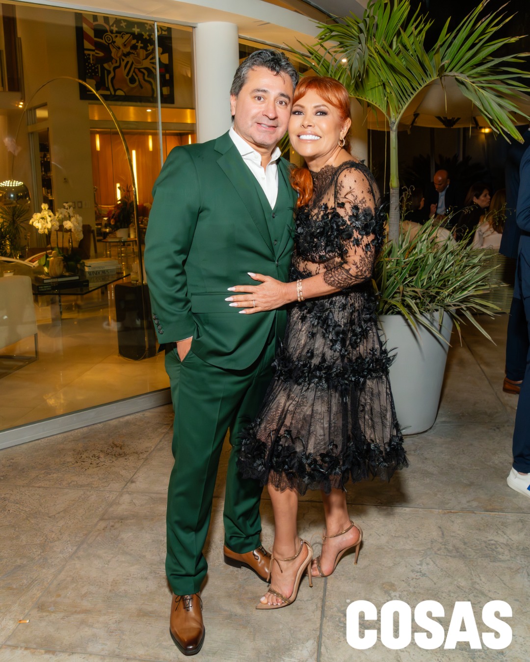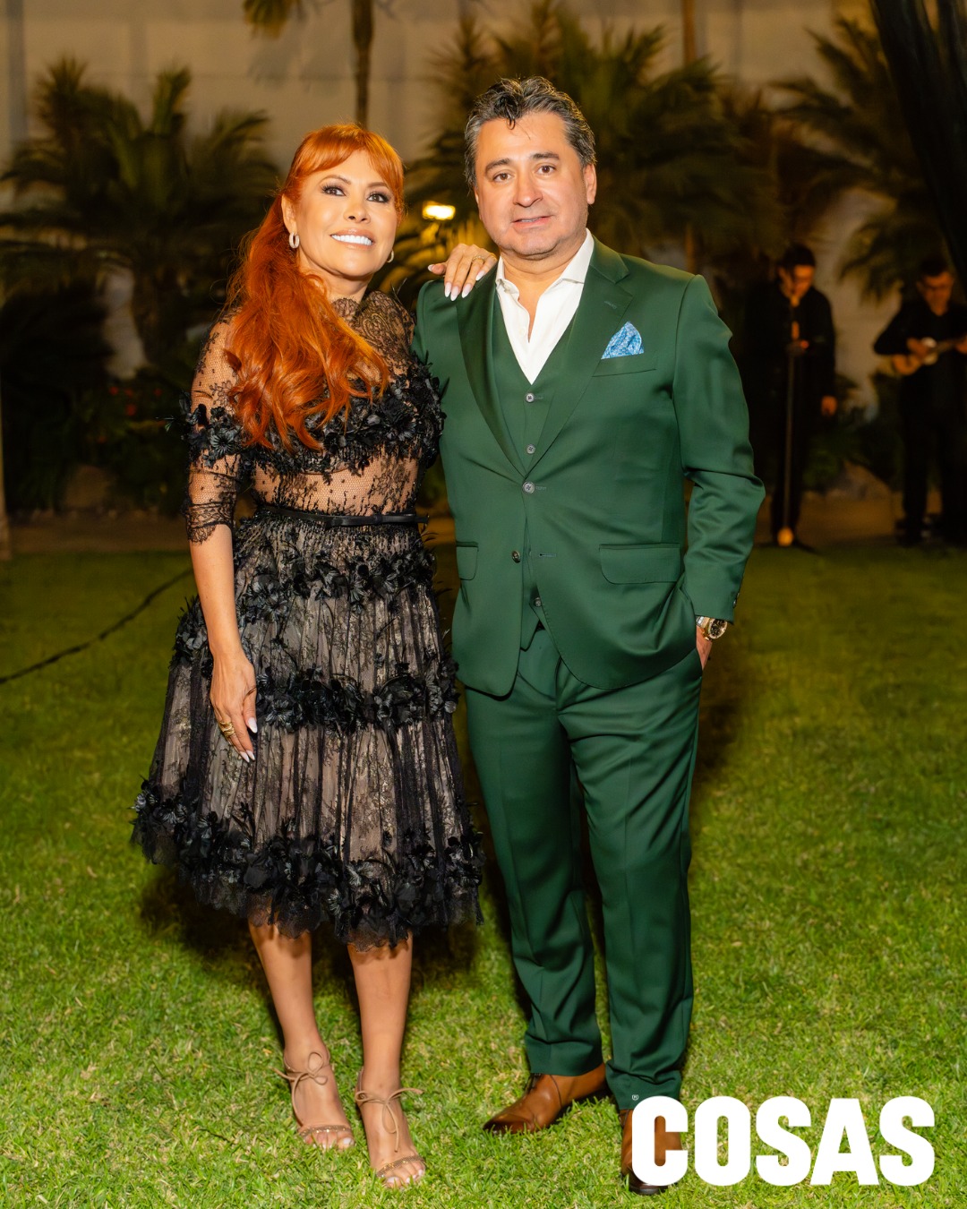Magaly Medina, junto a su esposo Alfredo Zambrano, ofreció un cóctel inspirado en las noches españolas. La velada contó con música en vivo y una interpretación especial del propio Alfredo. Entre los asistentes destacaron amigos llegados desde España, presentes en Lima por la gala benéfica organizada por el torero peruano Andrés Roca Rey, con quien Magaly mantiene una larga amistad desde sus inicios en la tauromaquia.