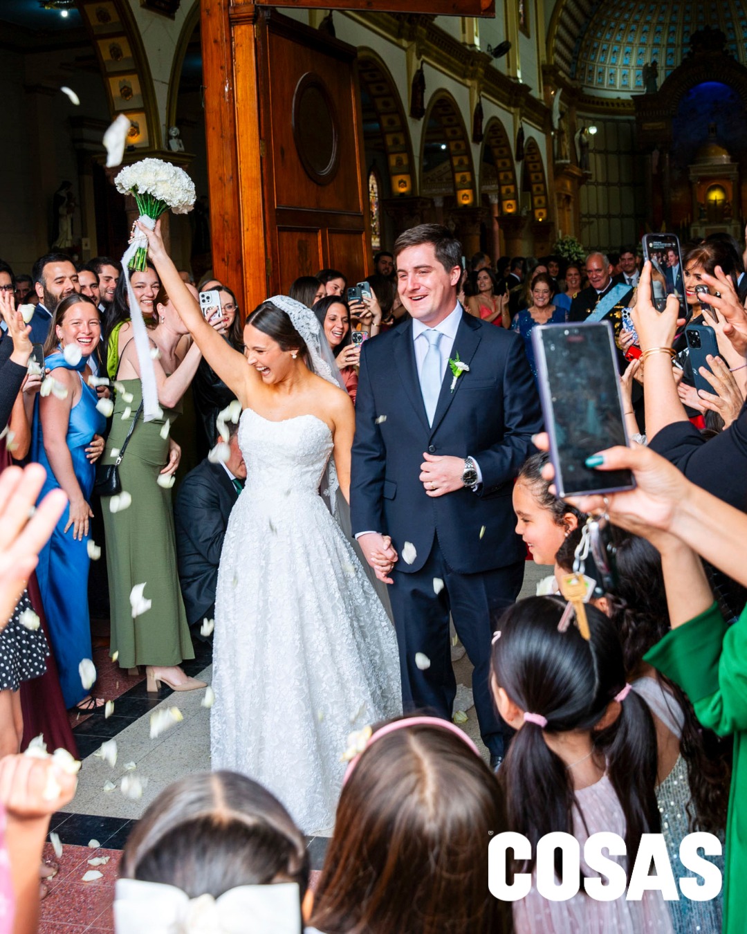 La boda se celebró en el Club Hebraica tras varios días de festejos previos, con una puesta a cargo de Felipe Ossio, violines en vivo y una hora loca inspirada en La Dolce Vita. La luna de miel recorrerá China, Japón y Tailandia.