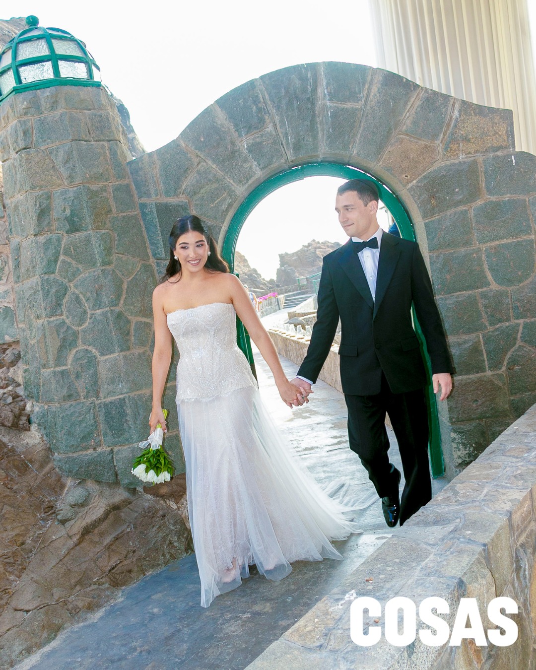 Conocidos desde la adolescencia, consolidaron su vínculo entre amistades y veranos en Ancón, y se comprometieron en Mallorca. Nicole llevó un vestido de Tom Sebastian y concibió junto a Efraín Salas niveles para el MALI, con catering de Felipe Ossio.