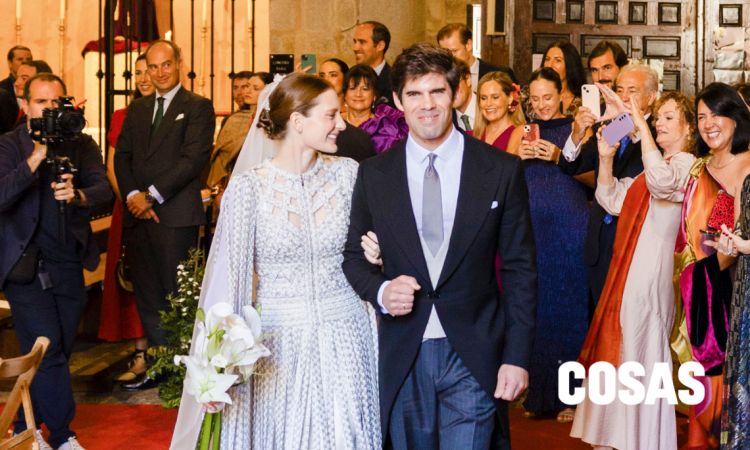Celebraron su boda con ceremonia en Santa Teresa y Santa Isabel y recepción en el Palacio de Aldovea, ciudad donde se conocieron. La pedida fue una sorpresa navideña en Trujillo, y eligieron un formato clásico, tradicional y atemporal.