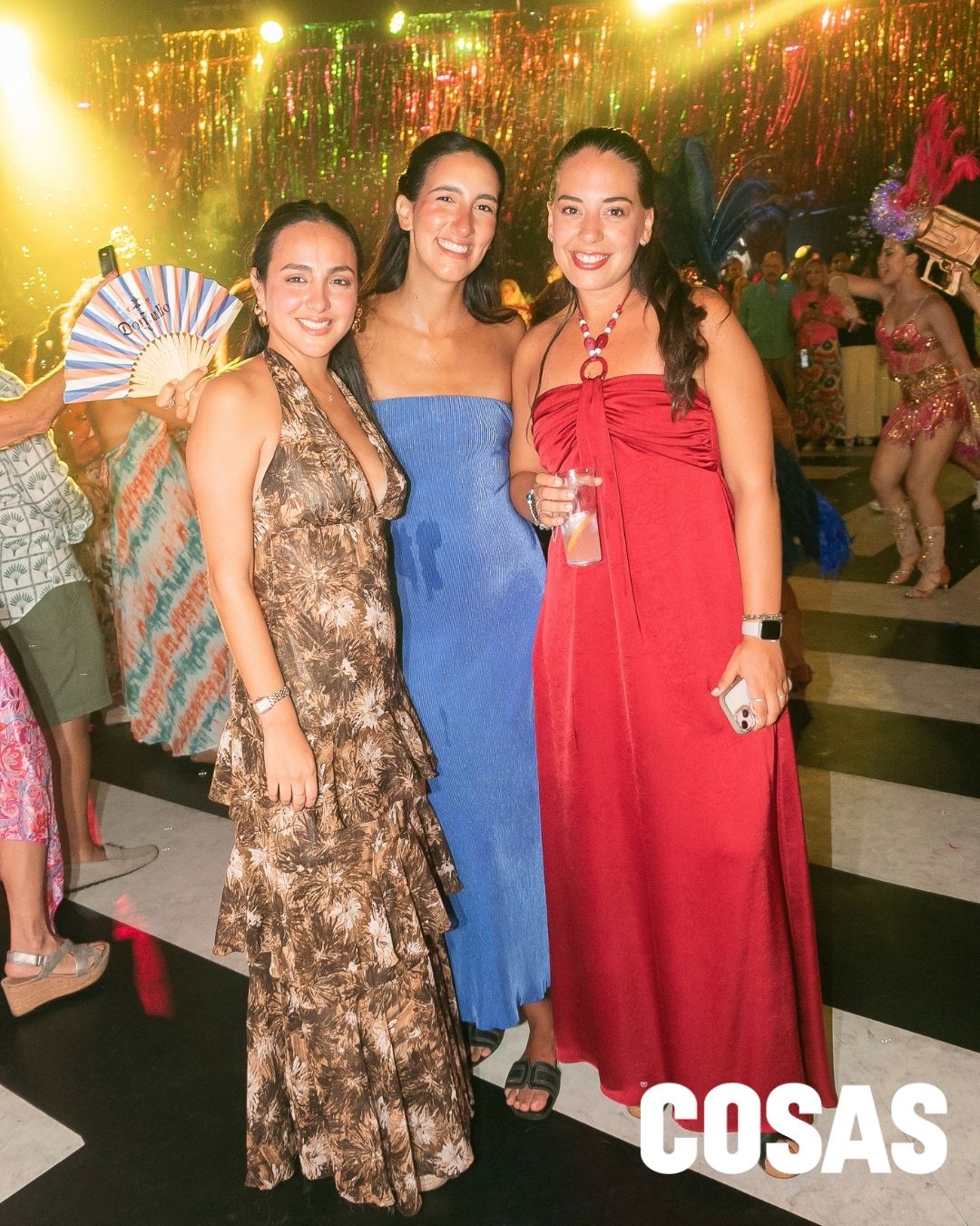 Tere Canaval, Maggy Rivero y Carolina Sbarbaro en la fiesta por carnavales en la playa Las Palmas.