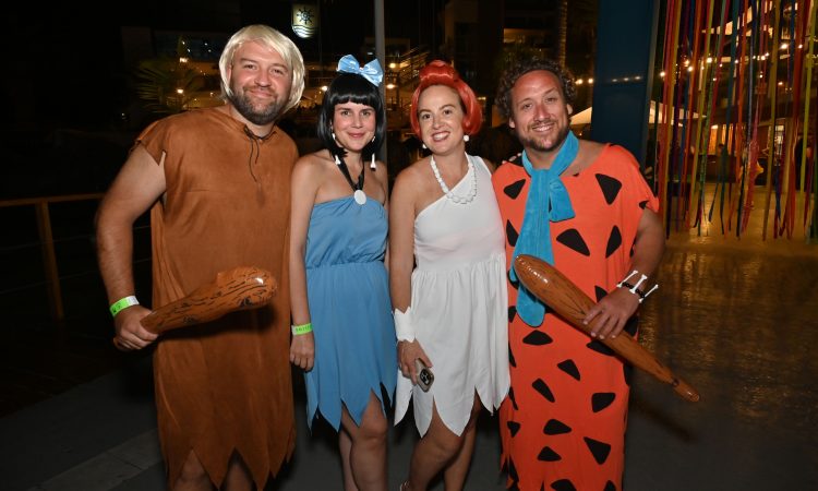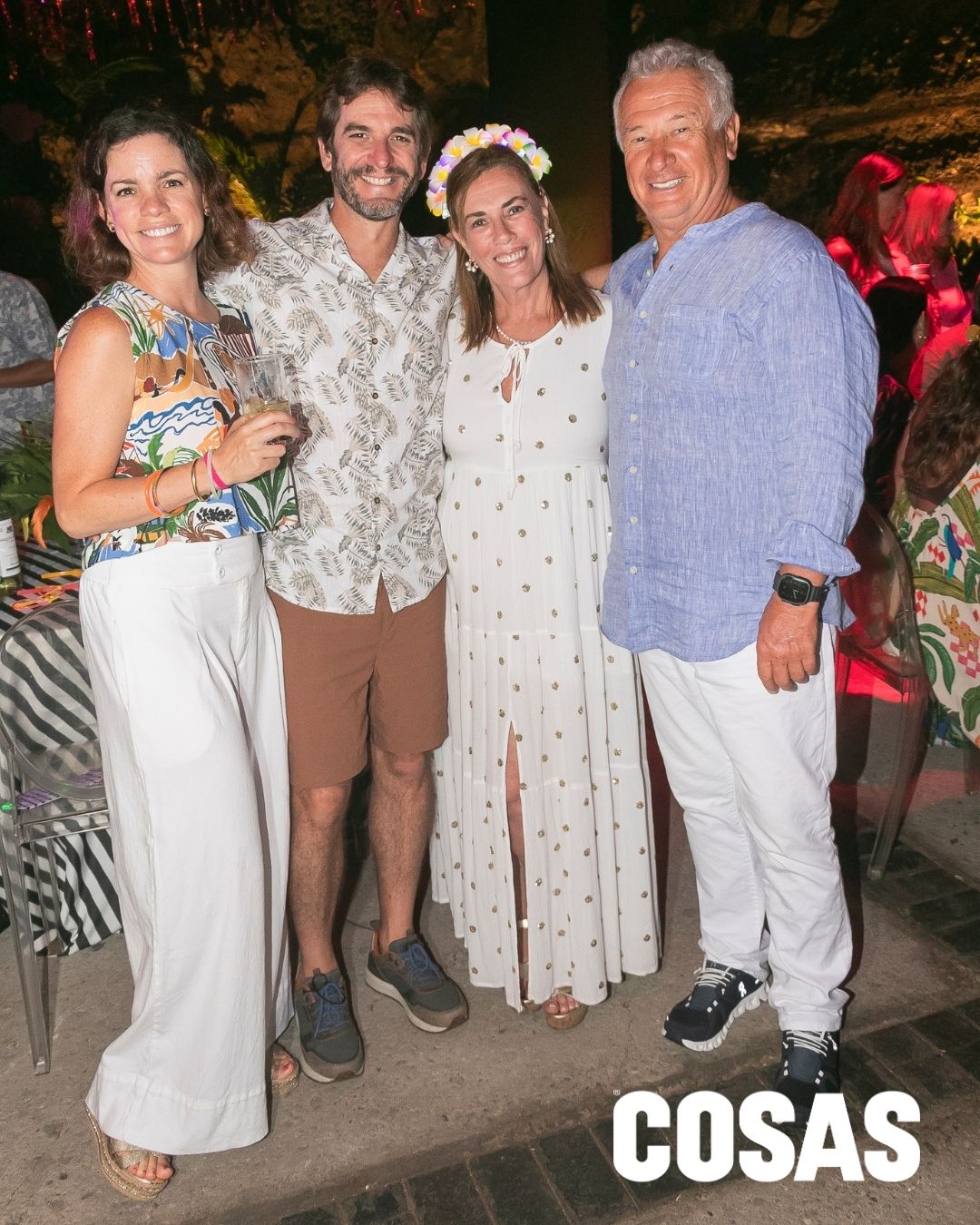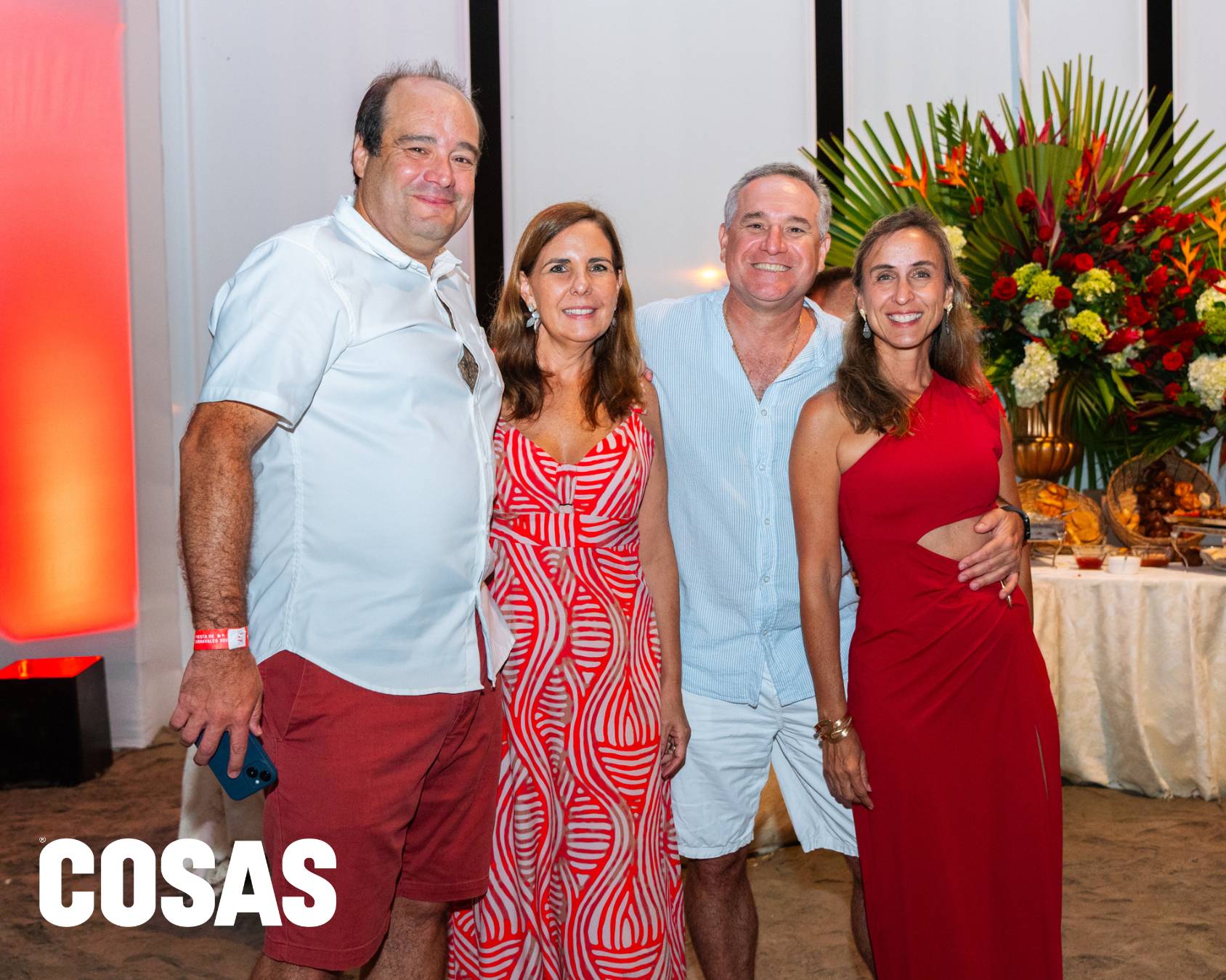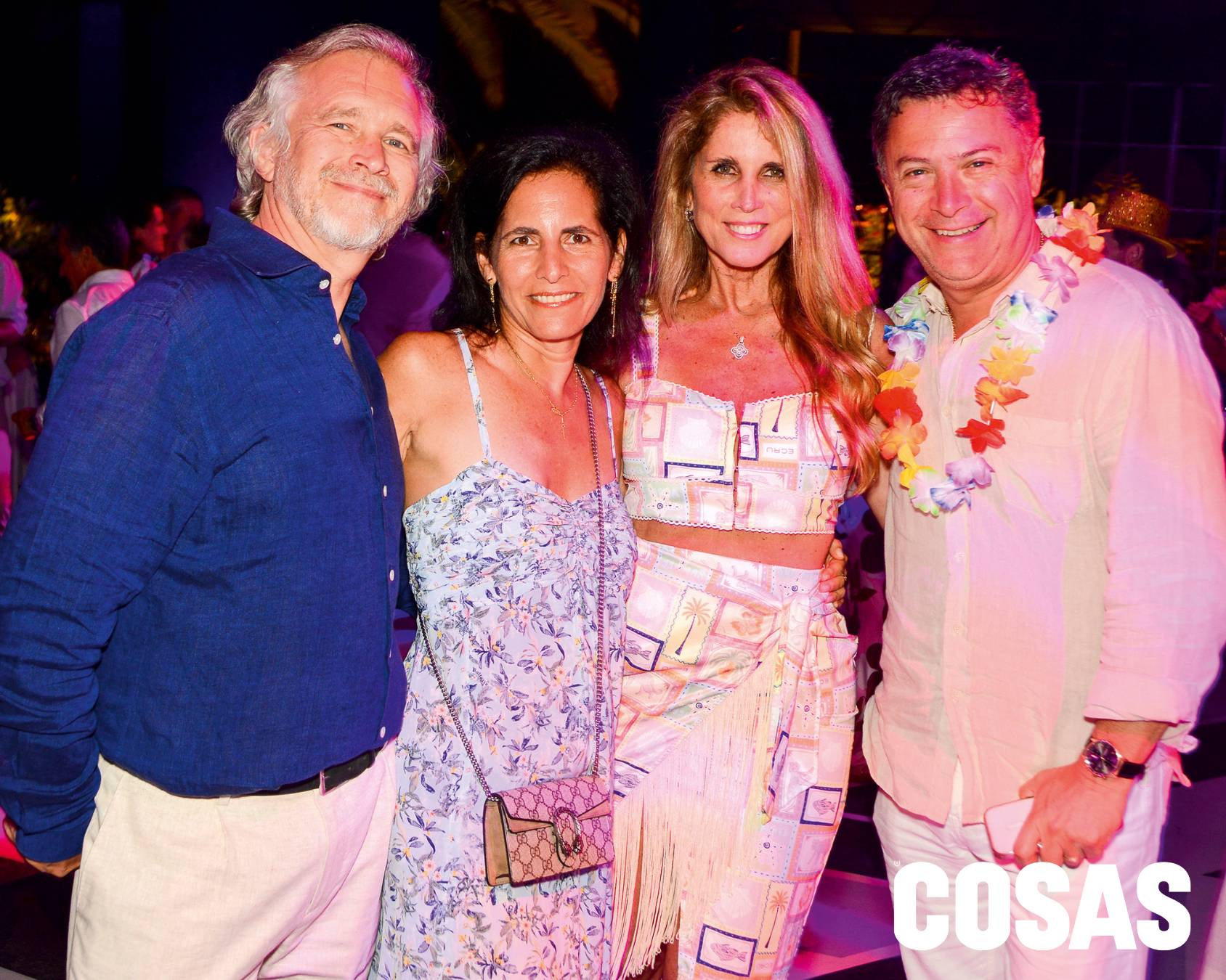 Ricardo Braschi, Verónica Chamorro, José de la Borda y Nani Valdez en la fiesta por carnavales en la playa Las Palmas.